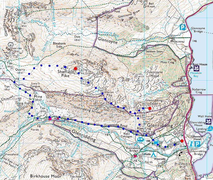 Route: Glenridding village - Glenridding Dodd - Heron Pike - Sheffield Pike - Nick Head - Greenside mines - Glenridding (Greenside Road) - Glenridding village