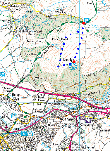 Route: Latrigg car park (end of Gale Road) - Latrigg - Latrigg car park