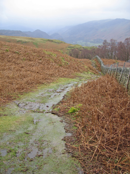 Walla Crag. Instead of carrying on to Rakefoot I headed along this path and then steeply up through Great Wood