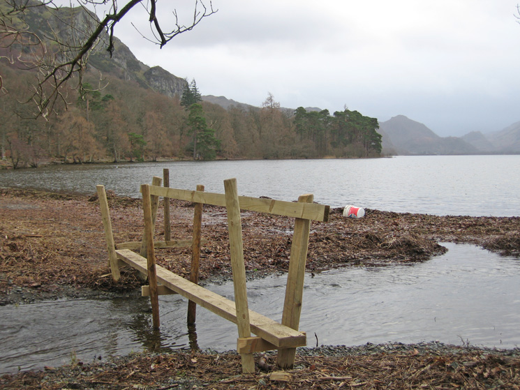 A new footbridge on the Derwent Water shore side path at Calfclose Bay
