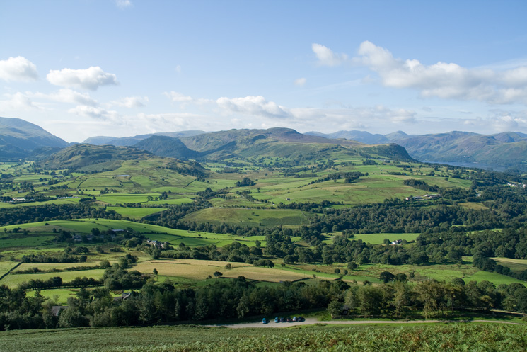 The view south to High Rigg and Bleaberry Fell from above the car park