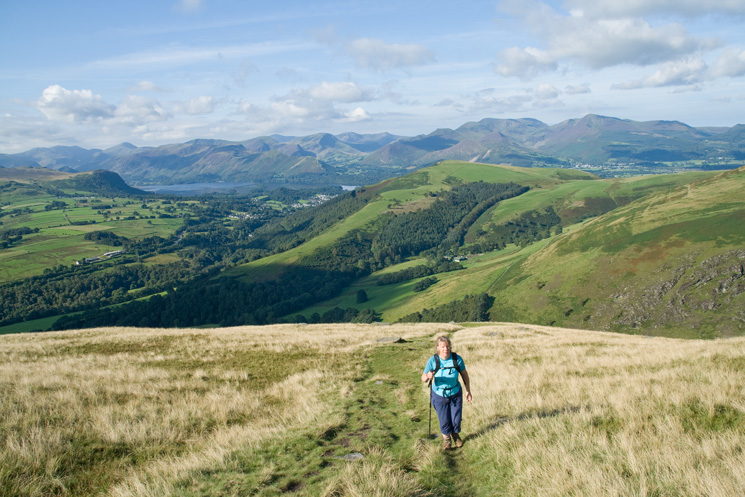 South over Walla Crag to Scafell Pike and Great Gable