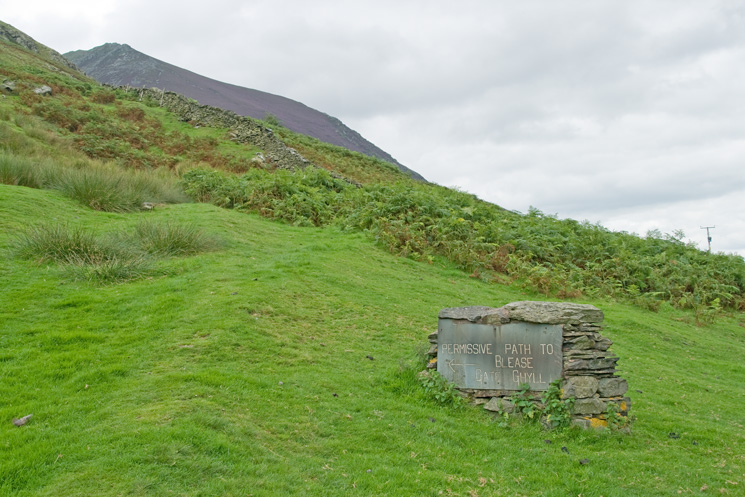 Start (or end depending on your direction of travel) of the permissive path under Blencathra from Blease Road