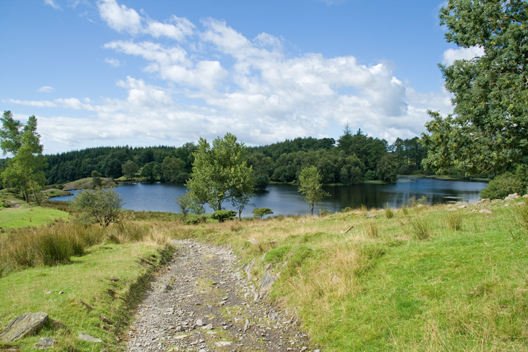 A last look back at Moss Eccles Tarn as we head up the track
