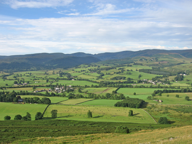 The villages of Bampton Grange and Bampton with the Haweswater fells beyond