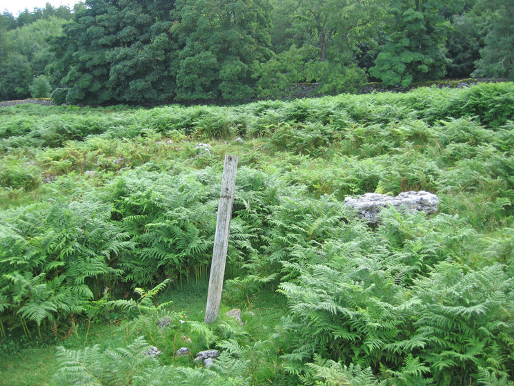 The Stone Circle on Knipescar Common would be difficult to spot in the bracken without this post