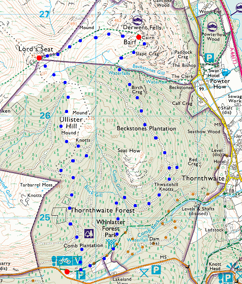 Route: Whinlatter Forest Visitor Centre - Whinlatter Forest - Barf - Lord's Seat - Whinlatter Forest - Whinlatter Forest Visitor Centre