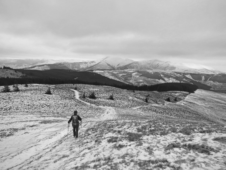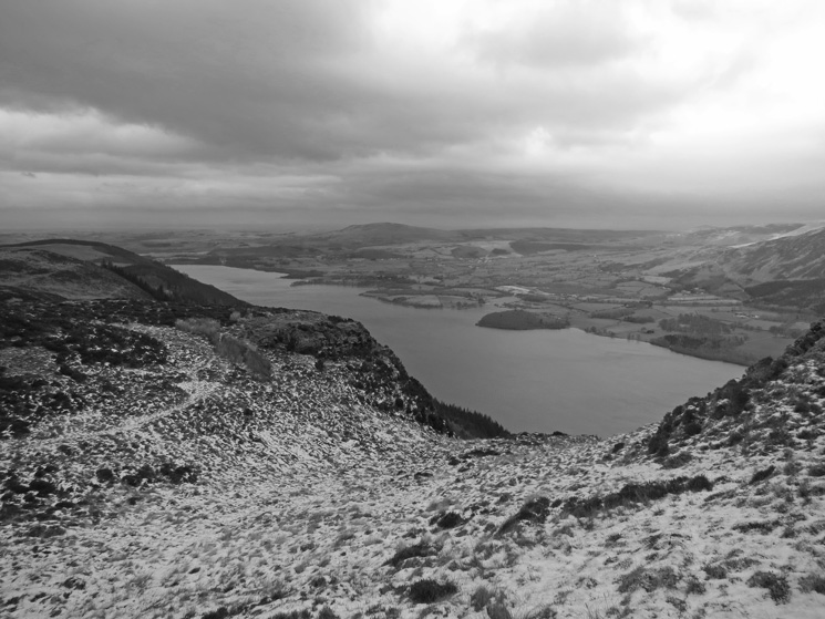 Over Bassenthwaite Lake to the Skiddaw fells from near the top of Barf