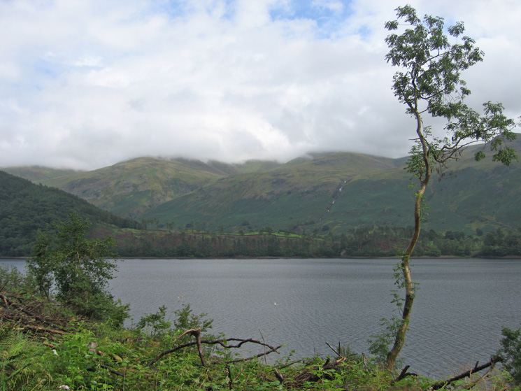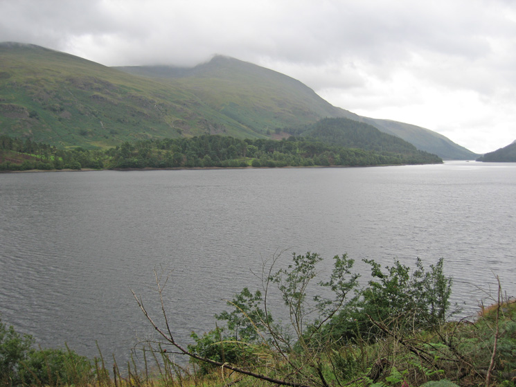 Looking across Thirlmere to Stybarrow Dodd with its top in cloud