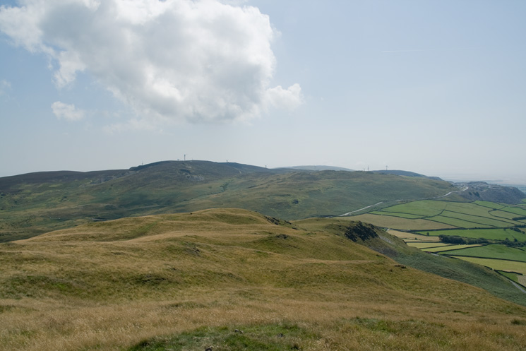 The windfarm on Lowick High Common to the south from Great Burney's summit