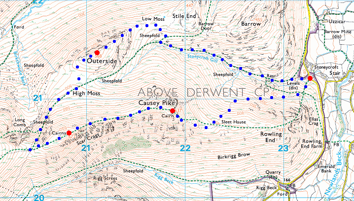 Route: Stonycroft near Stair - Sleet Hause - Causey Pike - Scar Crags - Sail Pass - High Moss - Outerside - Low Moss - Stonycroft Gill - Stonycroft near Stair