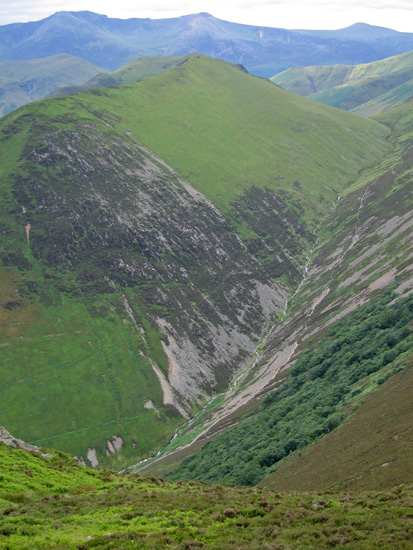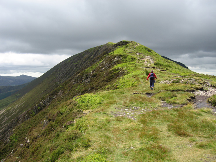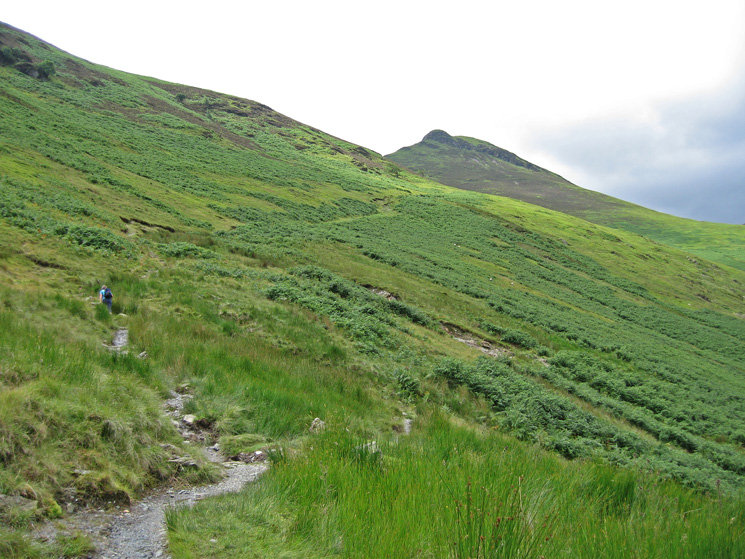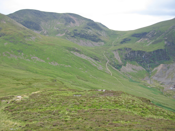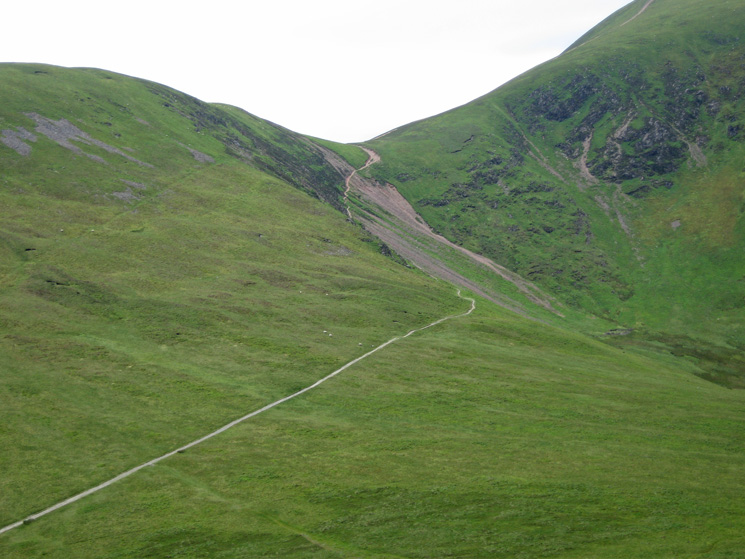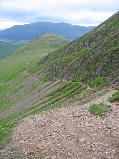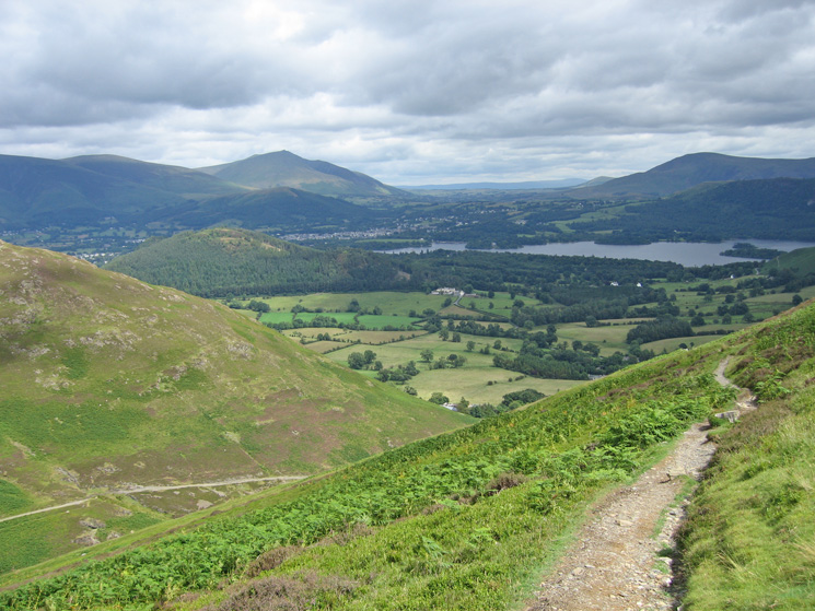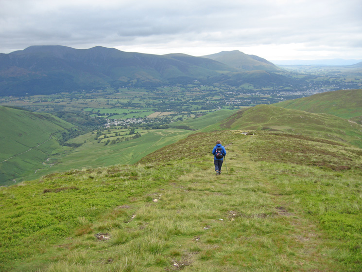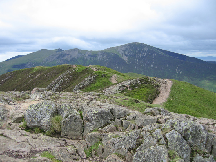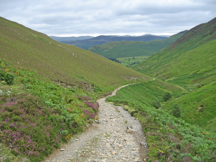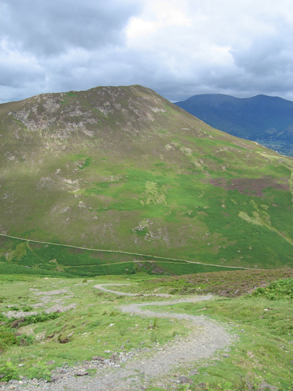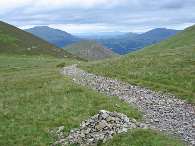The path to High Moss from Sail Pass with the Skiddaw fells behind Outerside