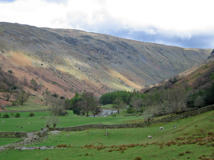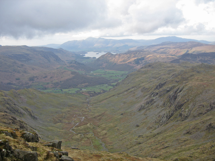 Combe Gill from Combe Head, Thornythwaite Fell on the left (our descent route) and Rosthwaite Fell on the right