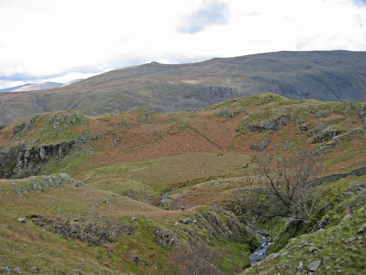 Looking across to Low Saddle, High Saddle and Ullscarf from by Big Stanger Gill