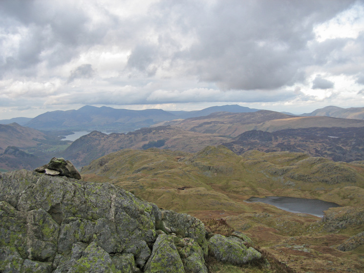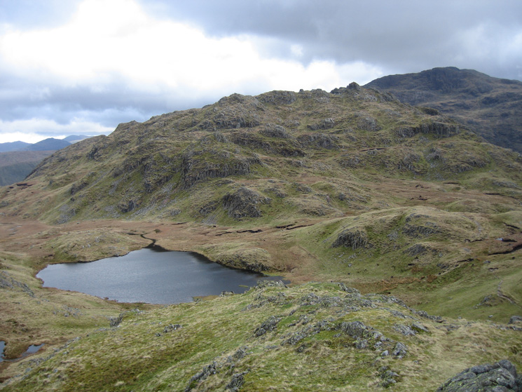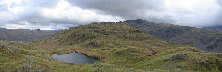 Looking over Tarn at Leaves to the higher southern part of Rosthwaite Fell with Combe Head behind right from Bessyboot's summit