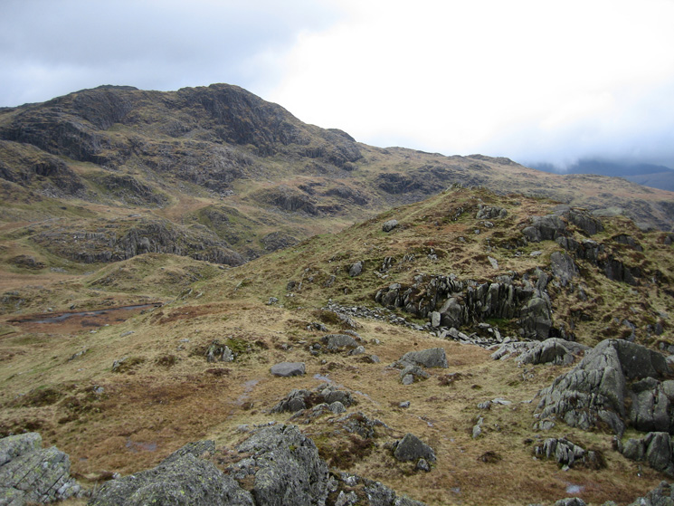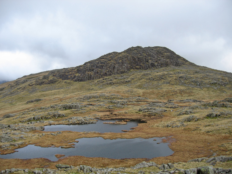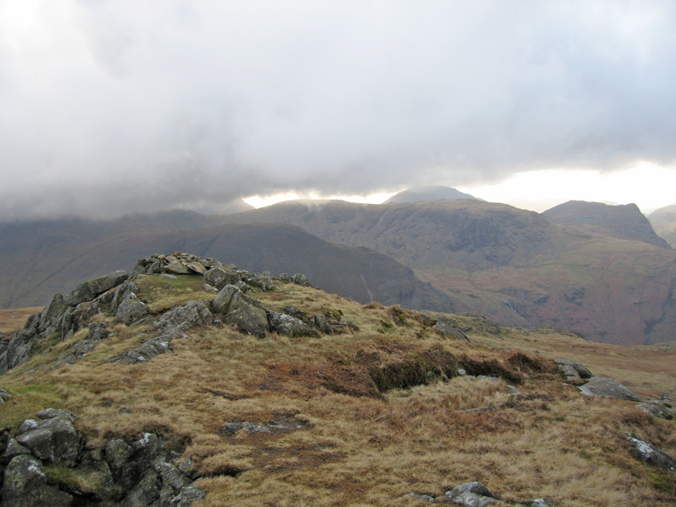 Bessyboot summit with the pointed top of Pike o'Stickle in the distance