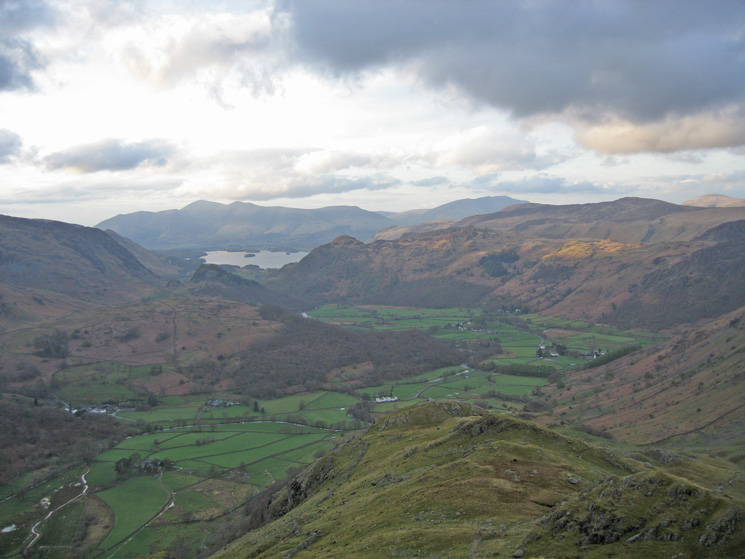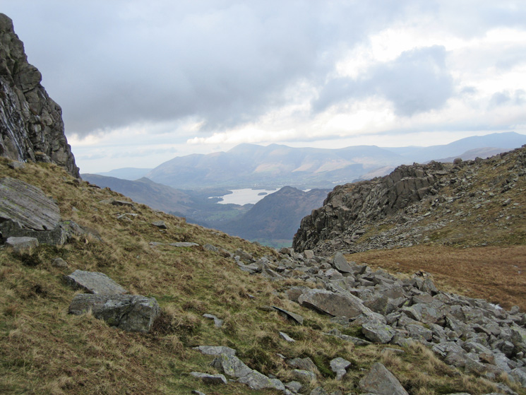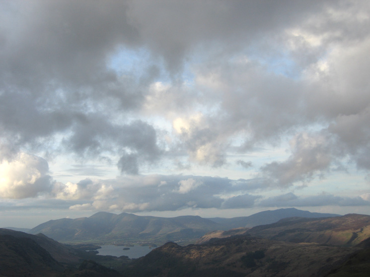 Looking back to Rosthwaite Cam with Derwent Water and Skiddaw in the distance from our ascent of Combe Door Top