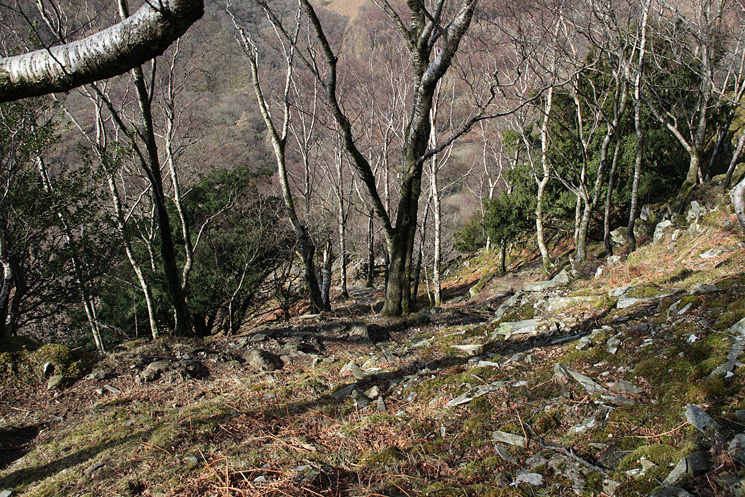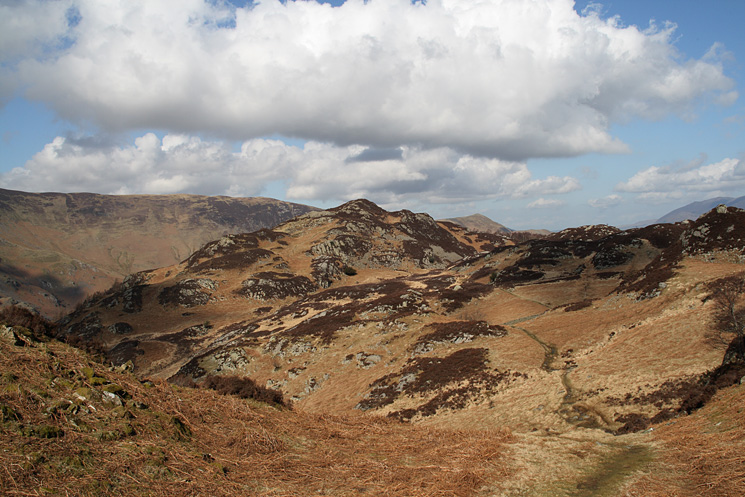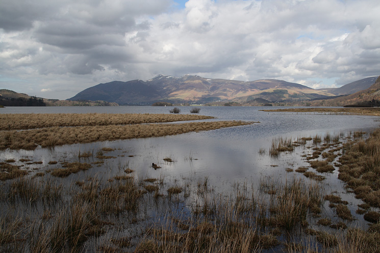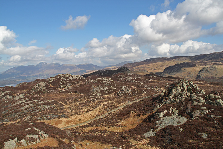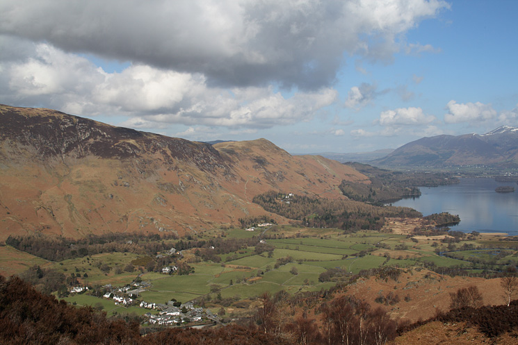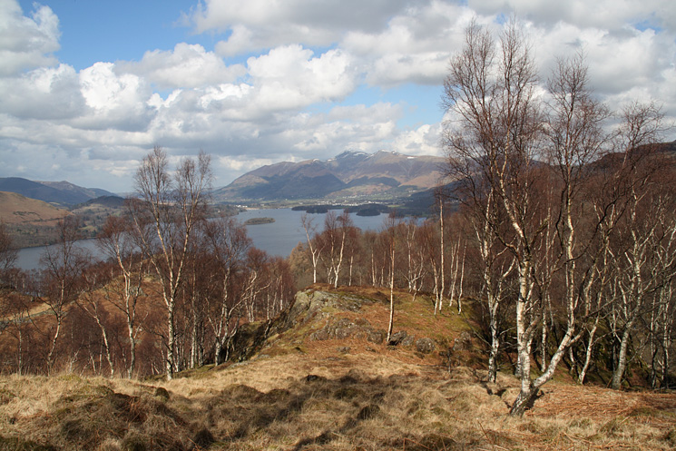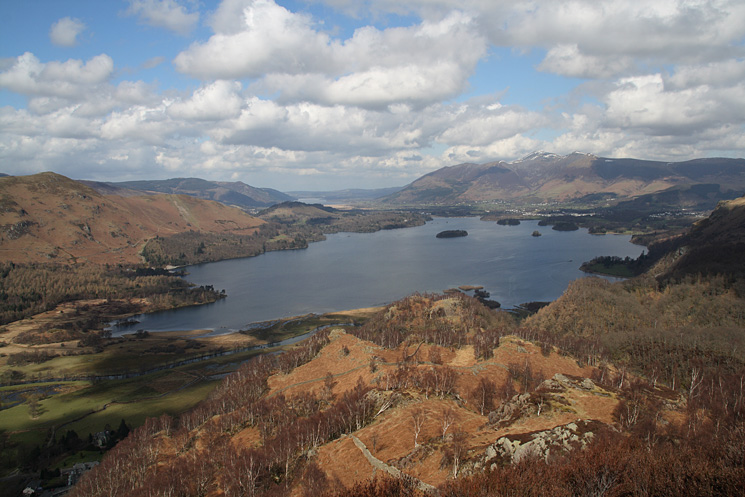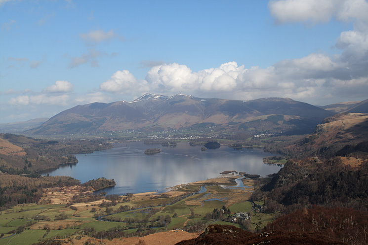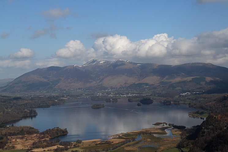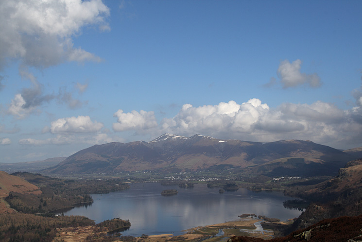 Derwent Water and Skiddaw as I take a twisting route down through Comb Crags