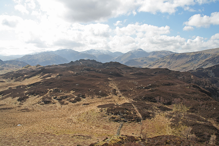 Jopplety How (near right) and the ridge to Ether Knott (in shadow, centre) from Brund Fell