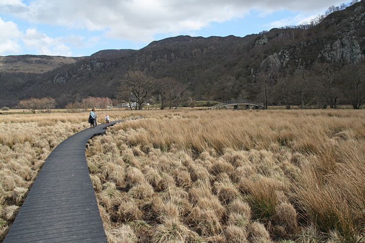 Looking back along the boardwalk, made of recycled plastic, to the bridge