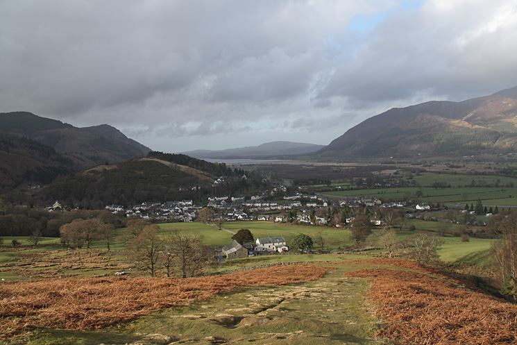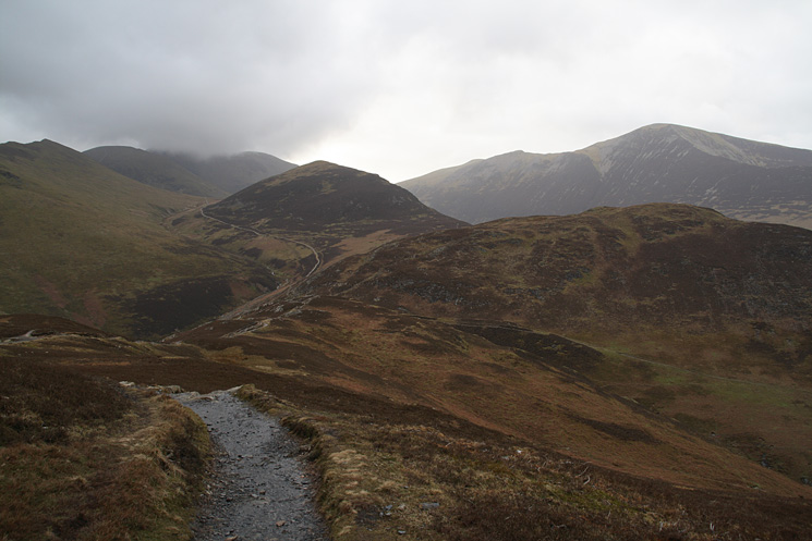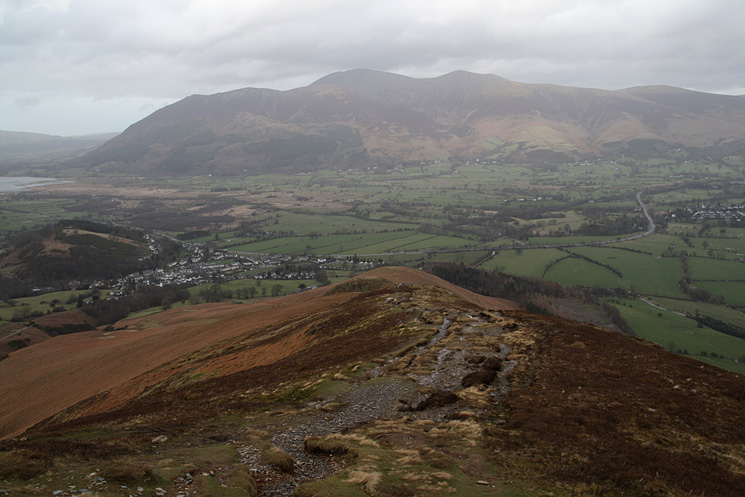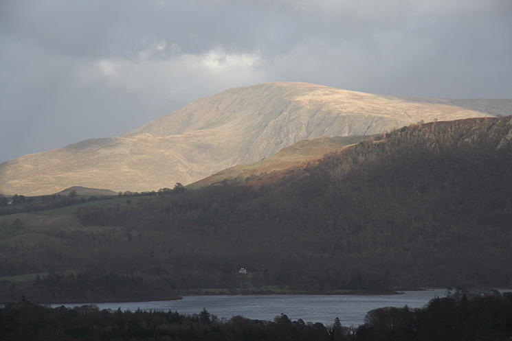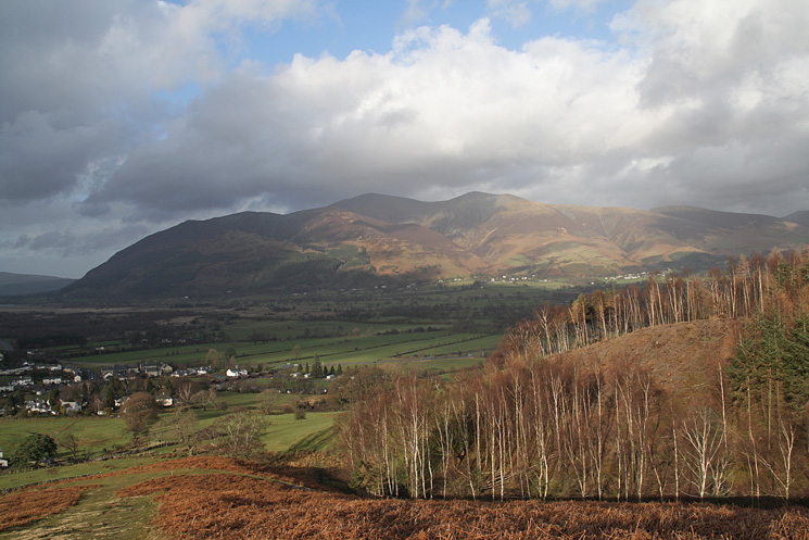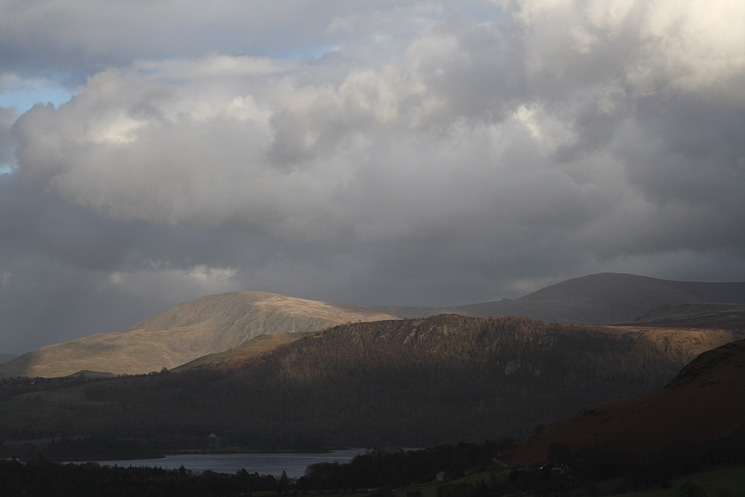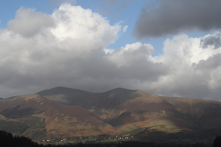 Sunshine on Walla Crag and a floodlit Clough Head behind