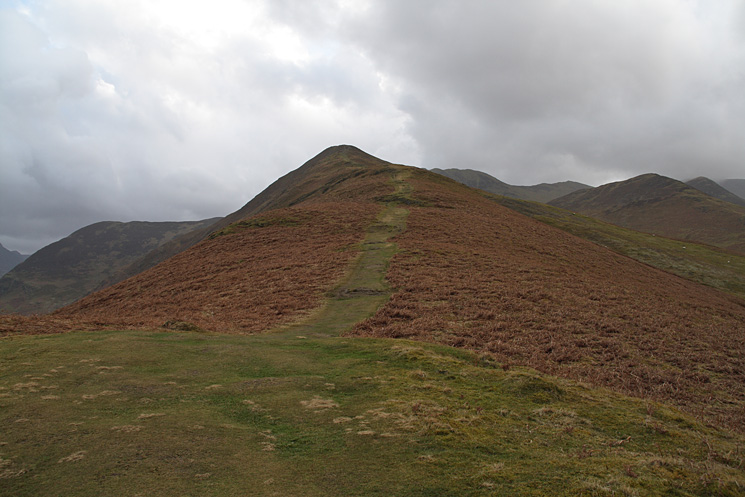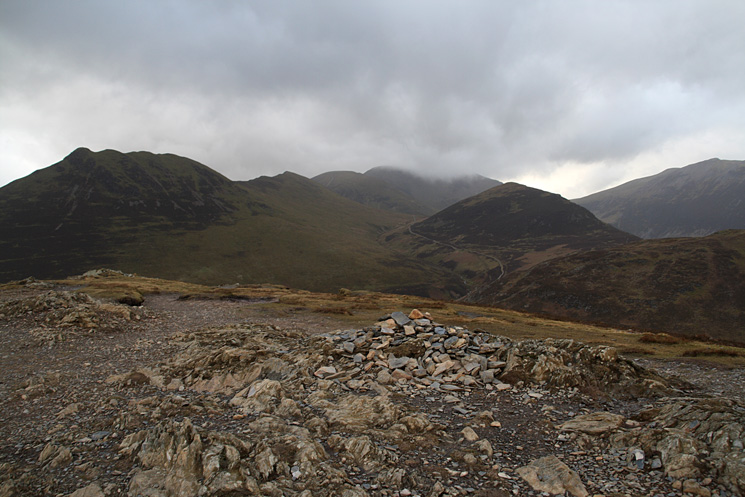 Causey Pike, Scar Crags, Sail, Eel Crag (in cloud), Outerside and Grisedale Pike's southwest top from Barrow's summit