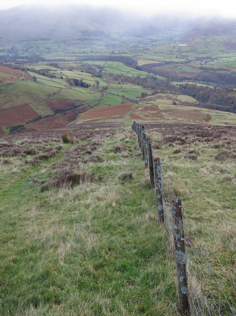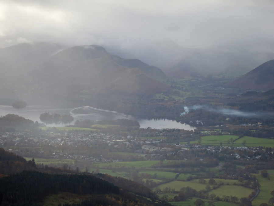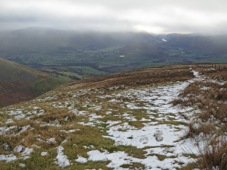 The view south from Lonscale Fell with the top of the Dodds/Hevellyn in cloud
