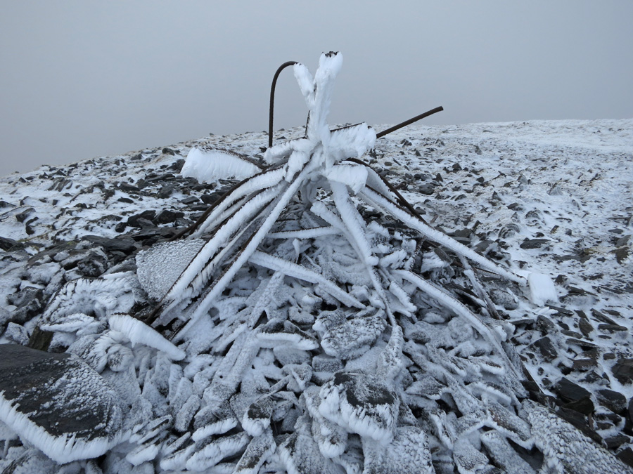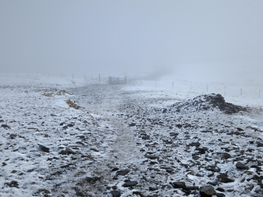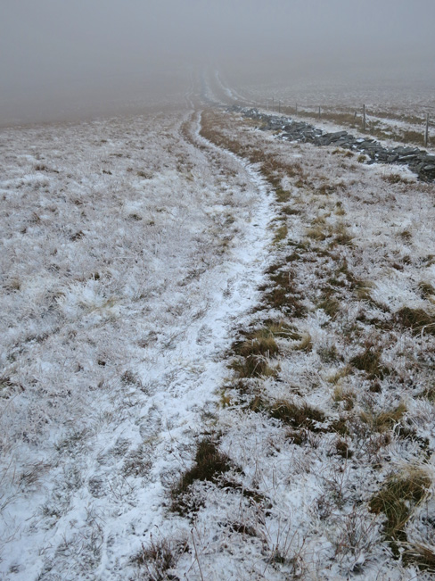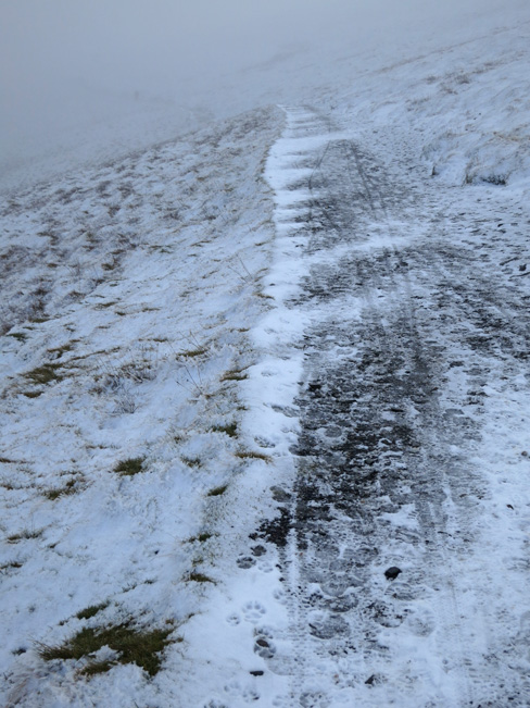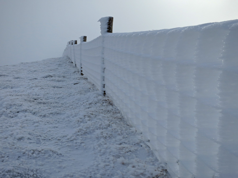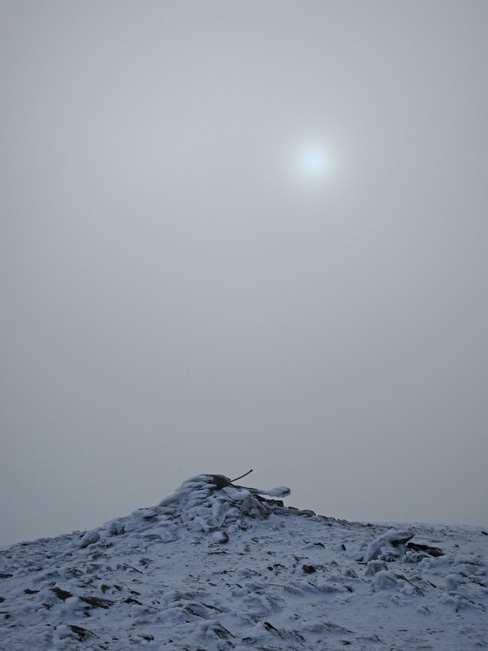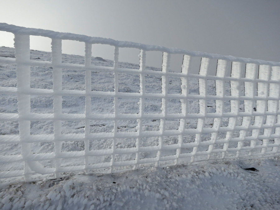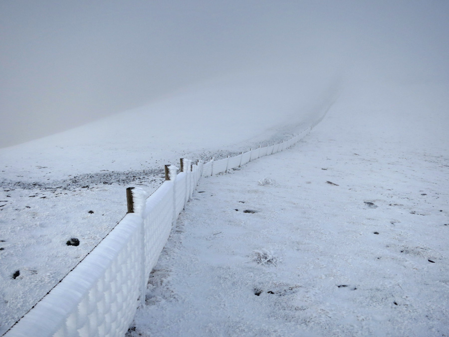 Up in the clouds again. Drizzle at times. A dusting of snow high up.