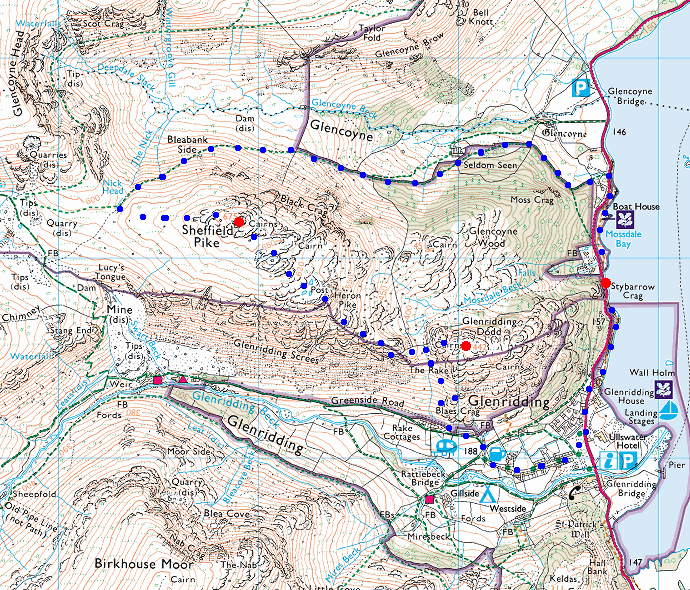 Route: Stybarrow Crag, Ullswater - Glenridding village - Glenridding Dodd - Heron Pike - Sheffield Pike - Nick Head - Glencoyne - Seldom Seen - Ullswater - Stybarrow Crag