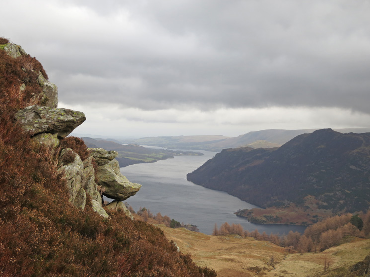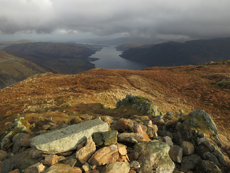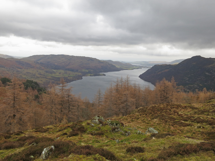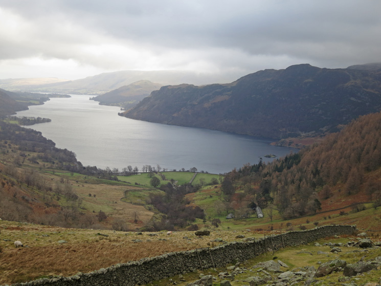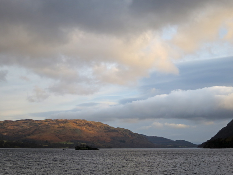 Looking down Ullswater to Gowbarrow Fell which is catching some sun