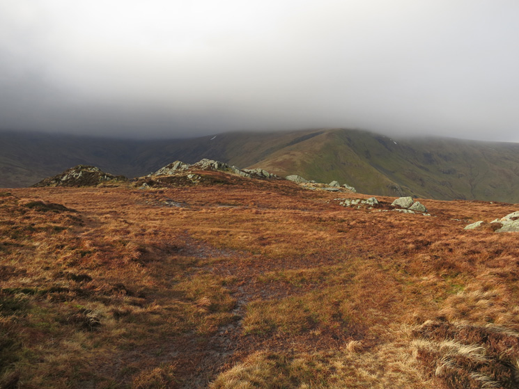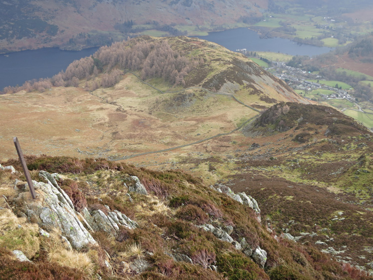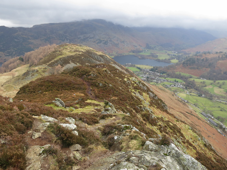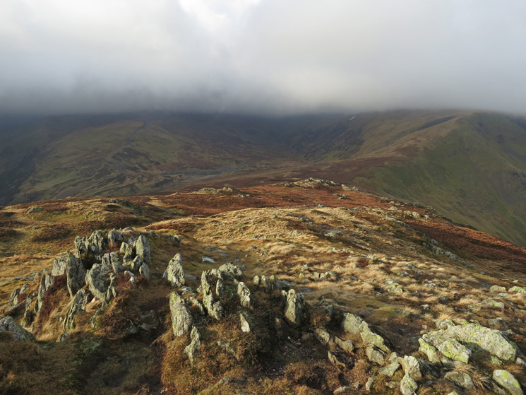 Looking back down on Glenridding Dodd from the boundary marker at Heron Pike's summit
