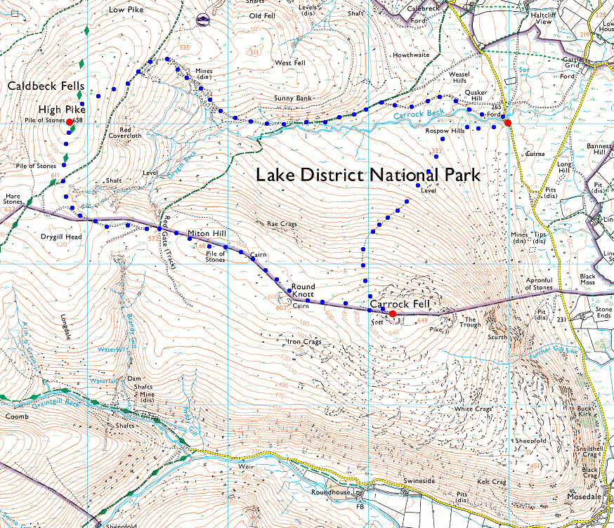 Route: Carrock Beck Ford - Carrock Beck - Driggith Mine - High Pike - Miton Hill - Carrock Fell - Carrock Beck Ford