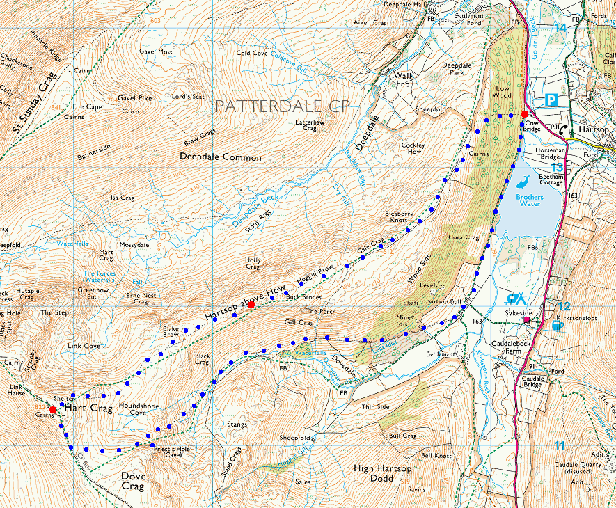 Route: Cow Bridge - Hartsop Above How - Hart Crag - Houndshope Cove - Priest's Hole - Houndshope Cove - Dovedale - Hartsop Hall - Brothers Water - Cow Bridge