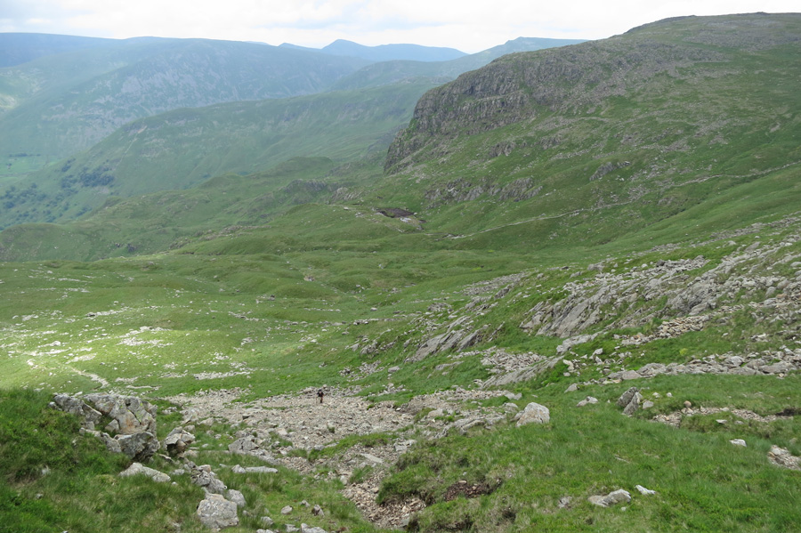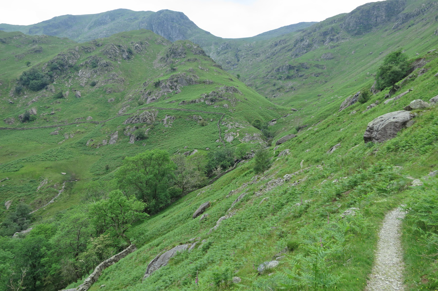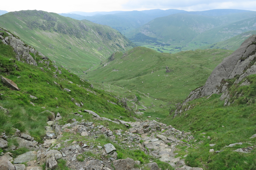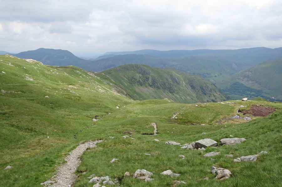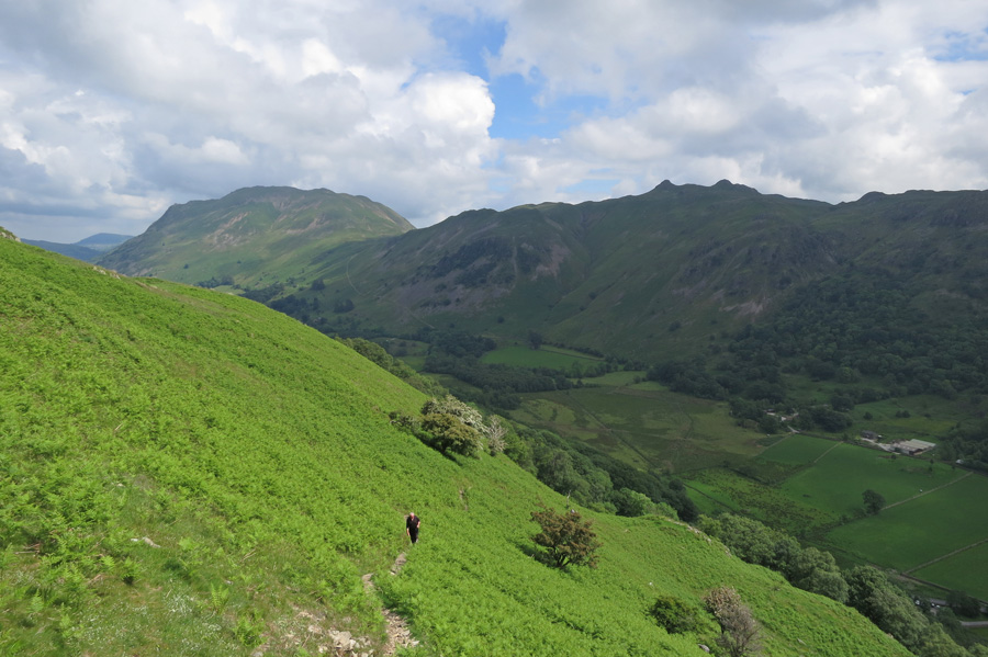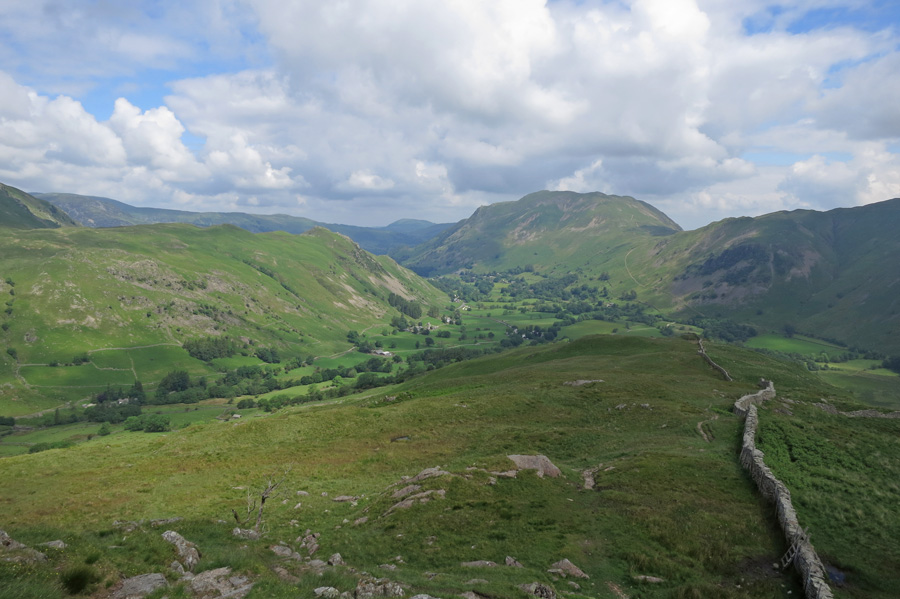 Looking back, Place Fell and Angletarn Pikes on the far side of the valley