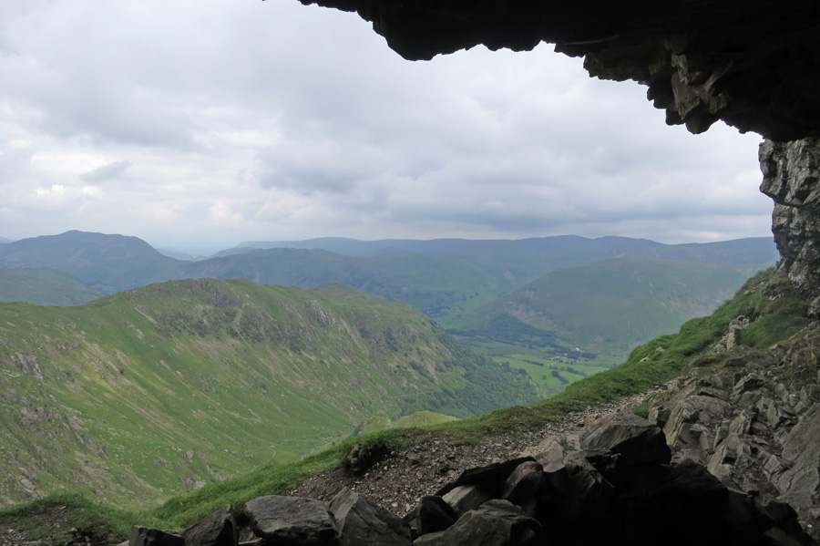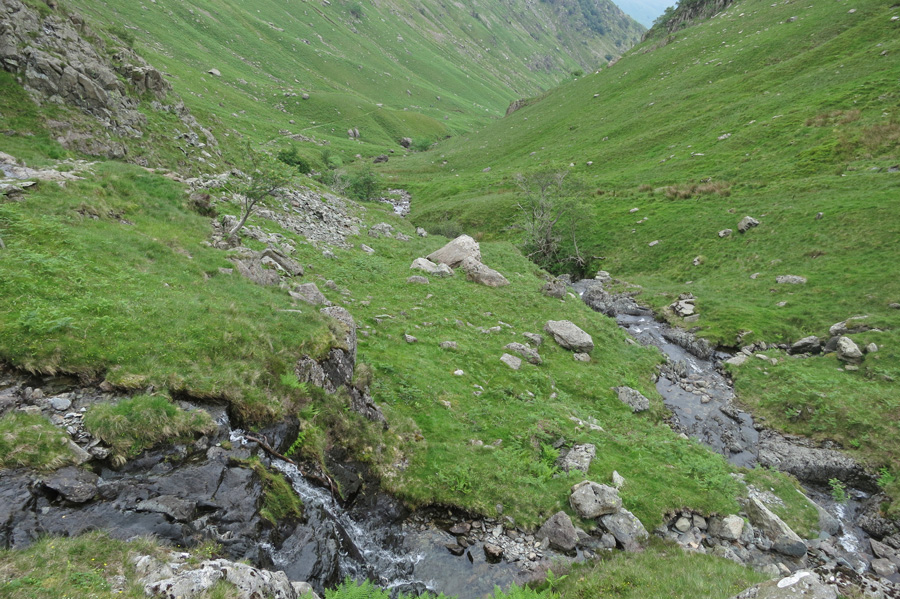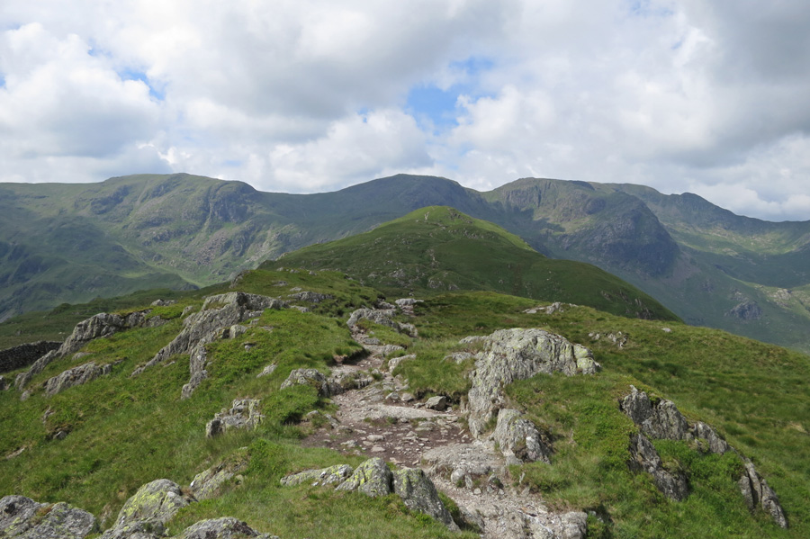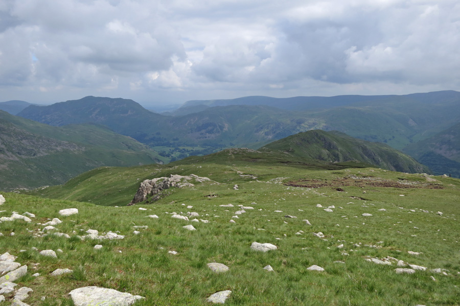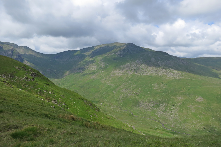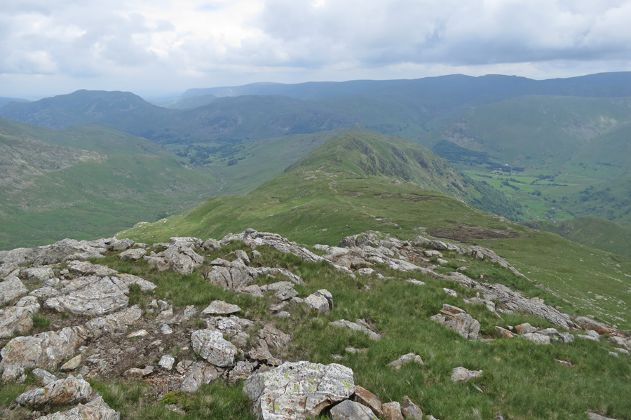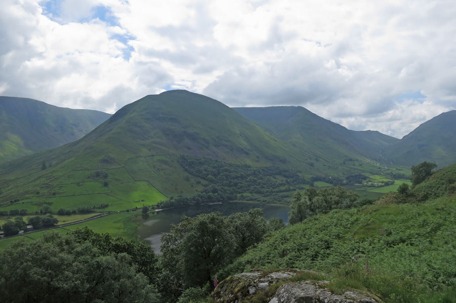 Looking back, Place Fell and Angletarn Pikes on the far side of the valley