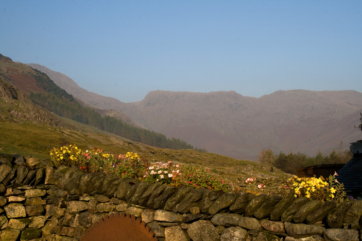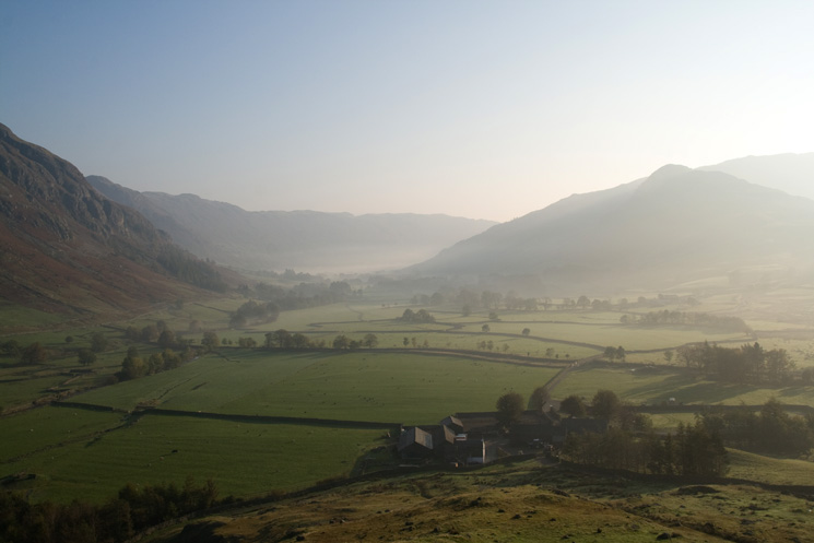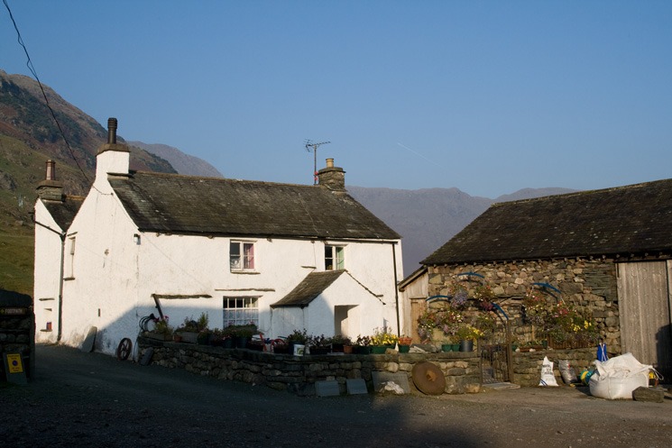 Stool End Farm and Great Langdale from near the bottom of The Band
