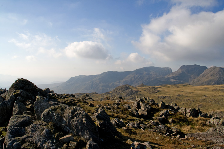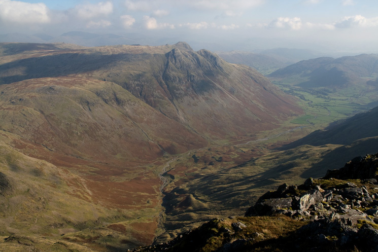 Mickleden and the Langdale Pikes from Bowfell's north top