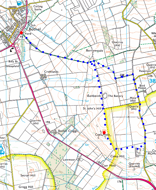 Route: Bothel - St John's Hill - Caermote Hill (St John's Hill) - Caermote Roman Fort - road - Bothel