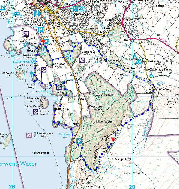 Route: The Theatre by the Lake, Keswick - Castle Head - Rakefoot - Walla Crag - Cat Gill - Derwent Water - Friar's Crag - The Theatre by the Lake