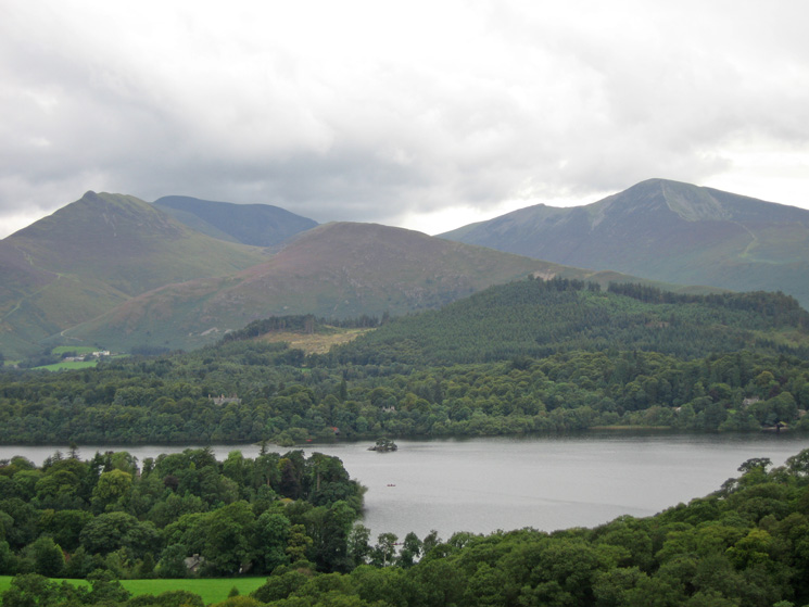 Causey Pike, Barrow and Grisedale Pike seen across Derwent Water from Castle Head