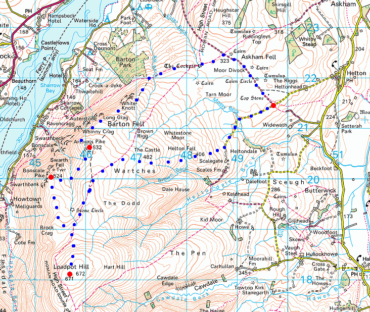 Route: Above Helton - Cop Stone - Moor Divock - The Cockpit - White Knott - Arthur's Pike - Bonscale Pike - Loadpot Hill - High Street Roman Road - Knotts (Helton Fell) - Above Helton