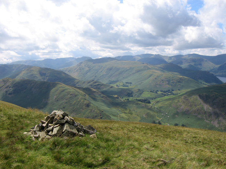 Place Fell with the eastern fells behind from Bonscale Pike's summit cairn