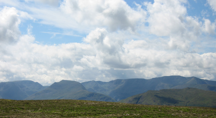 Fairfield, Saint Sunday Crag, Dollywaggon Pike, Nethermost Pike and Helvellyn from Loadpot Hill's summit