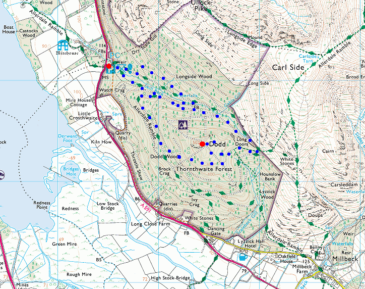Route: Mirehouse, The Old Sawmill Tea Room - Long Doors - Dodd - Mirehouse, The Old Sawmill Tea Room