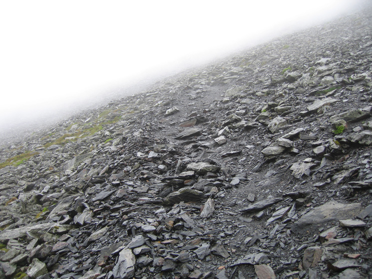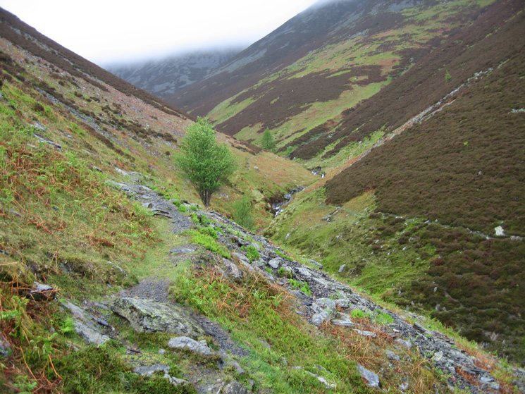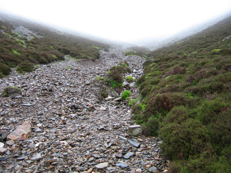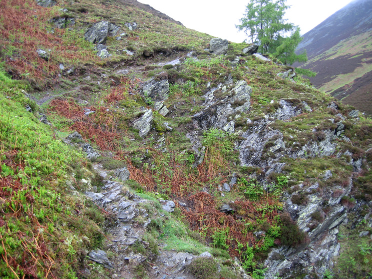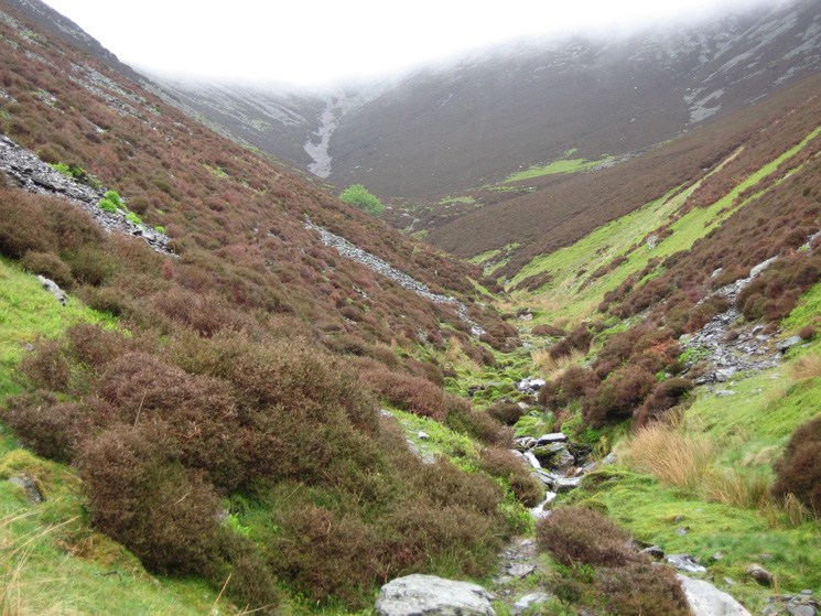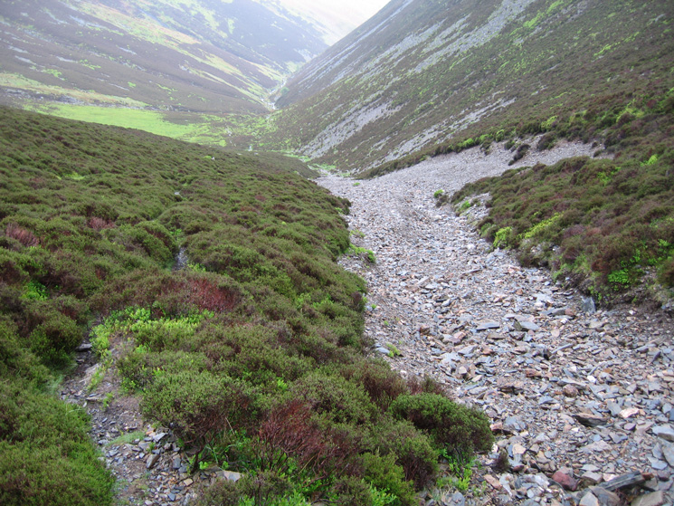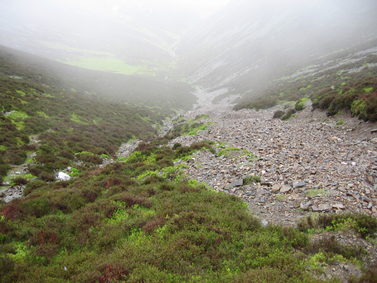 Looking back down my ascent route, the scree can be avoided for most of the ascent by following a small path through the heather