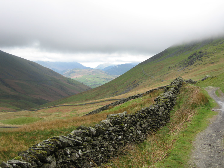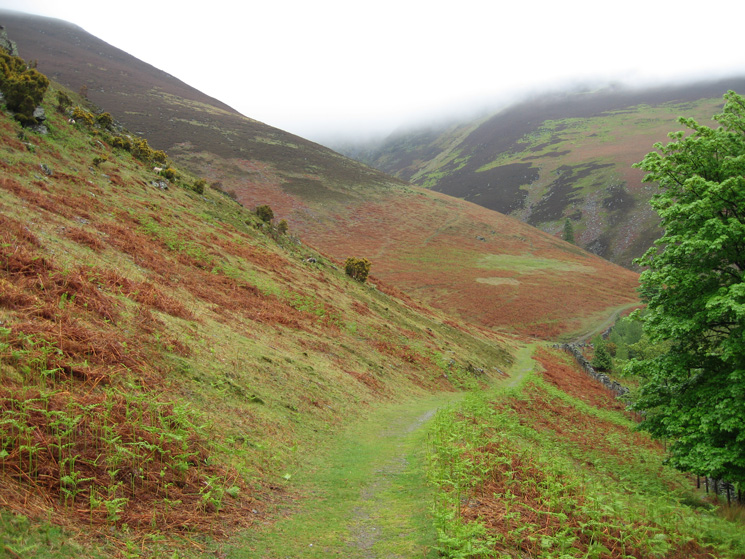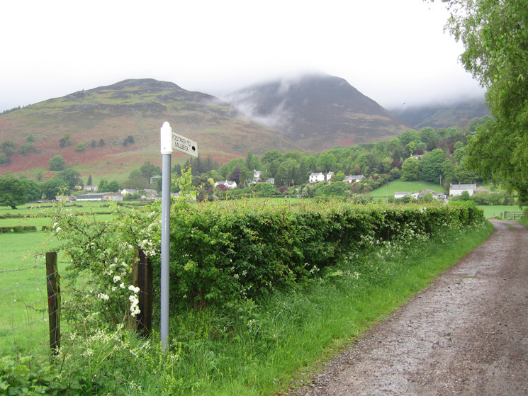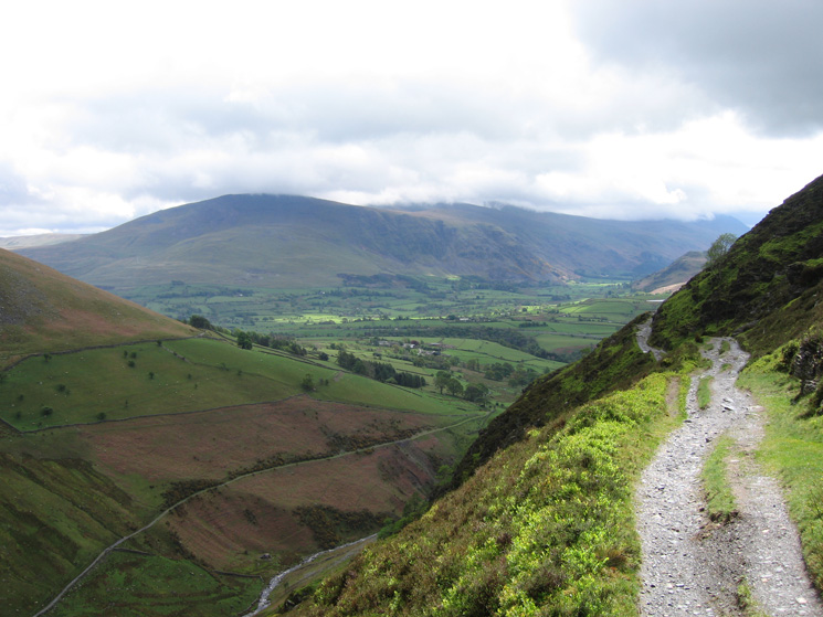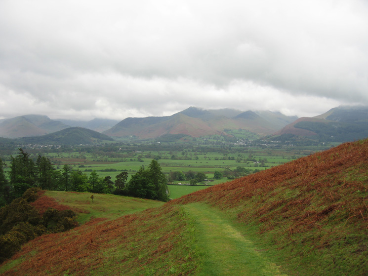 On the Cumbria Way with Lonscale Fell on the right and Blease Fell (Blencathra) on the left