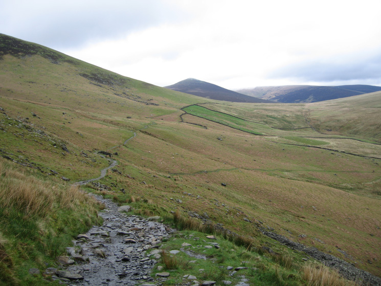 Looking back along the Cumbria Way with Great Calva (the pointed peak) in the distance