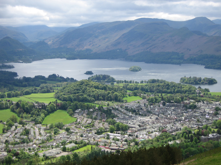 Derwent Water and Keswick come into view as we gain height ascending Carsleddam
