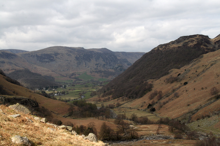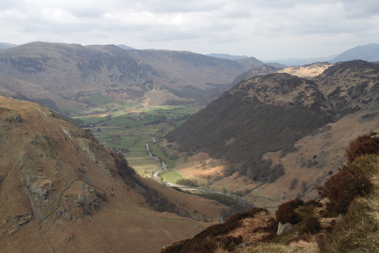 The Stonethwaite valley and High Spy from the ascent of Eagle Crag