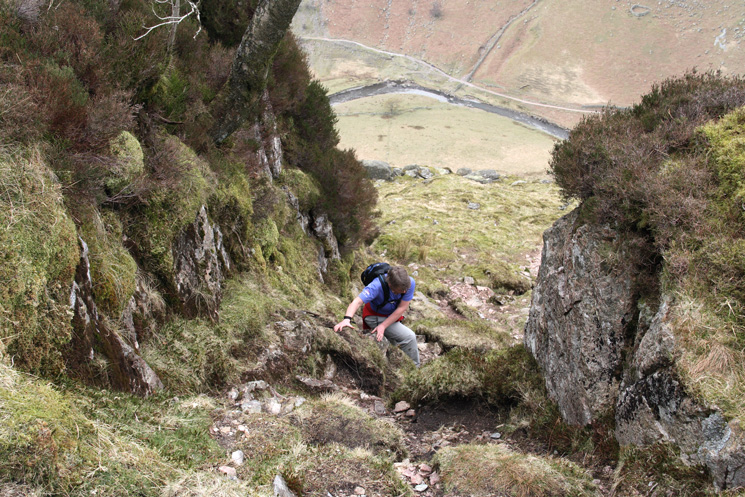 Ascending the short gully above the stile, Wainwright's 'A' route, Eagle Crag